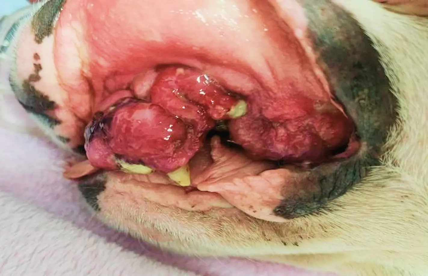 El melanoma oral canino es una neoplasia de alta malignidad caracterizada por un comportamiento biológico agresivo, con rápida invasión a estructuras óseas adyacentes (maxilar o mandíbula), diseminación linfática regional, y un elevado potencial metastásico a distancia.
