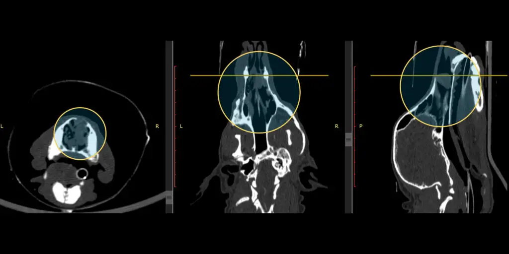 Las neoplasias de la cavidad nasal y los senos paranasales representan un desafío diagnóstico y terapéutico en la oncología veterinaria. Debido a la anatomía compleja de la región y la tendencia de estos tumores a invadir estructuras óseas subyacentes, el abordaje exclusivamente quirúrgico presenta grandes limitaciones y, a menudo, no logra el control local de la enfermedad.
